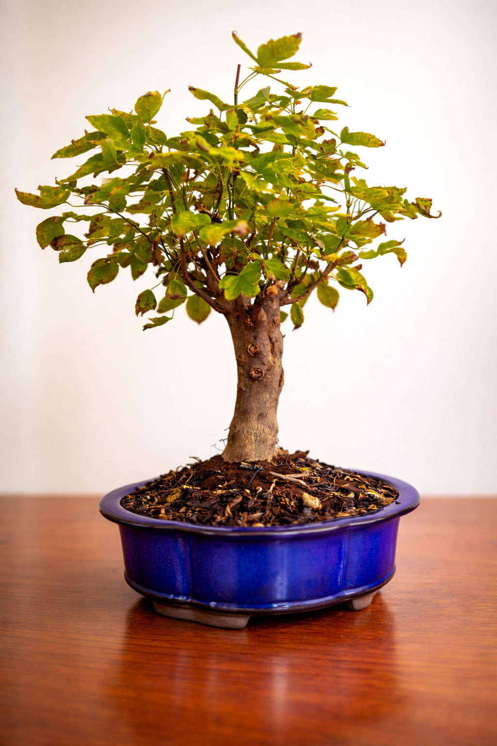 • Hojas trilobuladas con excelente proporción para bonsái.