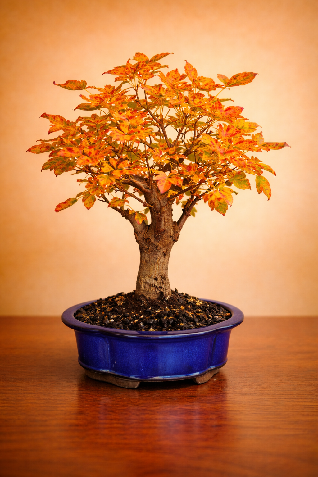 El Acer buergerianum es un bonsái completo: fácil de cuidar, visualmente impactante y altamente agradecido al trabajo técnico. Una pieza que ofrece belleza durante todo el año y un espectáculo excepcional en otoño, perfecta para cualquier colección bien equilibrada. 🍁