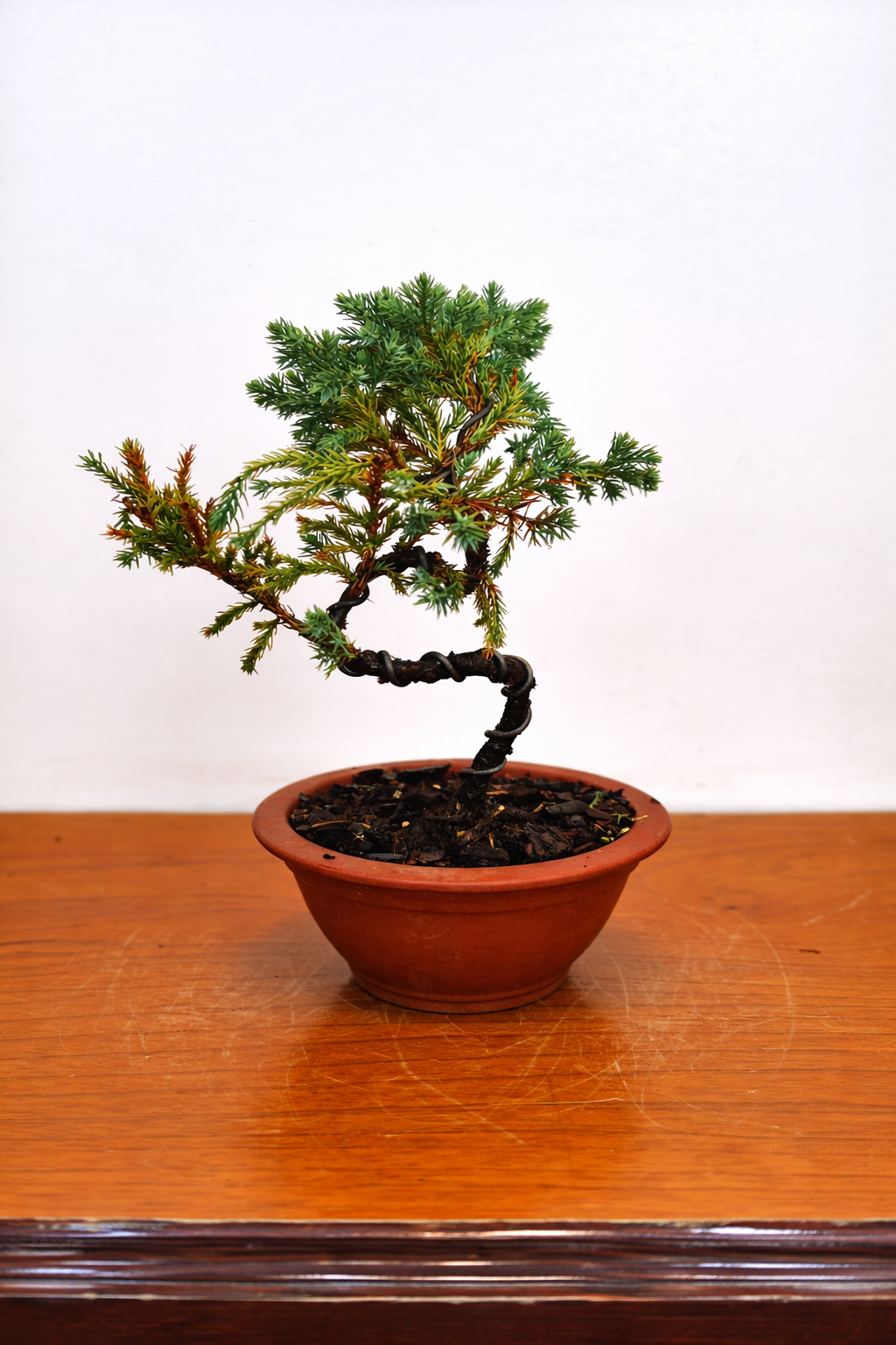 El junípero jacaré es de carácter fuerte y silvestre, reconocido por su corteza rugosa y agrietada que recuerda la piel de un jacaré. Su aspecto antiguo y natural transmite resistencia y longevidad, convirtiéndolo en una pieza muy apreciada por su belleza rústica y su capacidad de expresar el paso del tiempo en miniatura.
